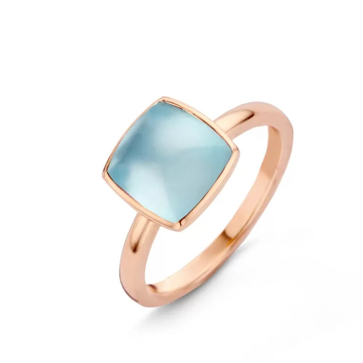 Pantelleria ring in 18K rose gold with Sky Blue topaz on MOP.