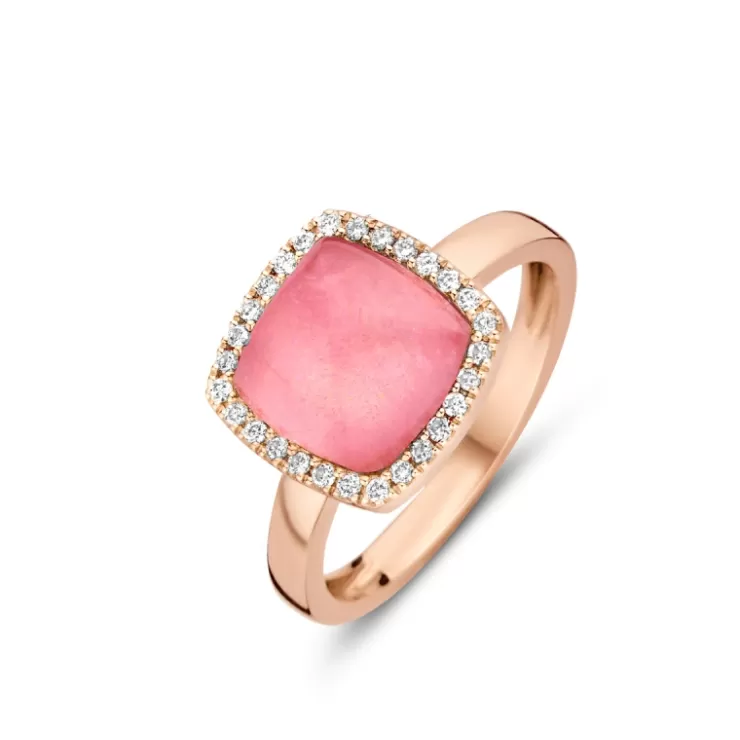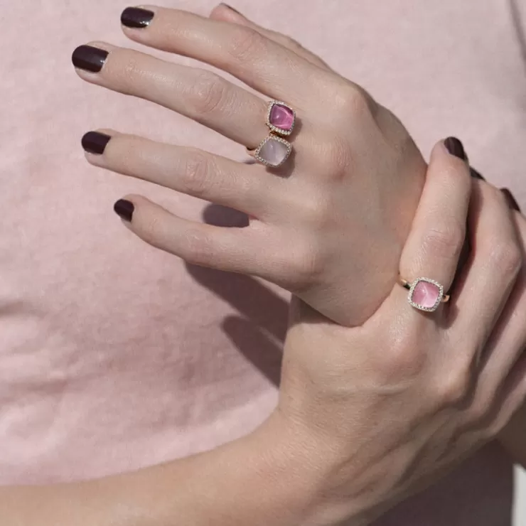 Pantelleria ring in 18 kt rose gold, quartz on rhodochrosite + MOP and diamonds.