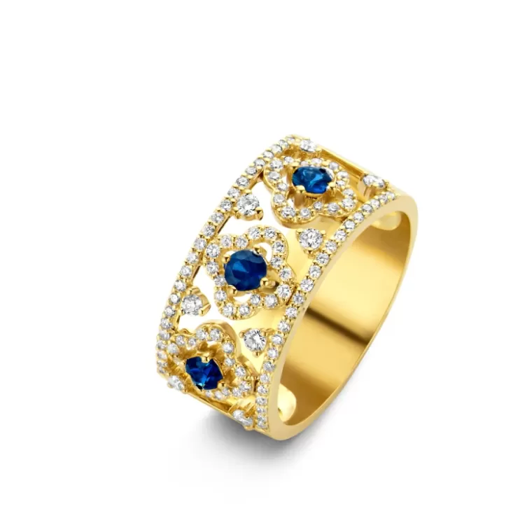 Salina ring in 18K yellow gold with blue sapphire and diamonds.