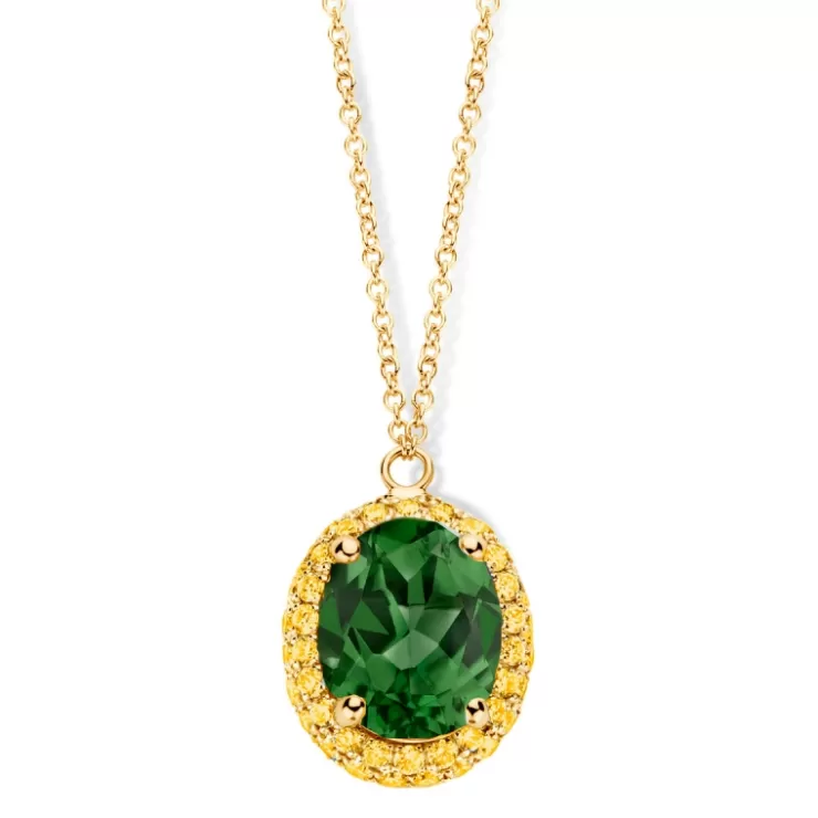 Etna necklace in 18K yellow gold with green tourmaline and yellow sapphire.