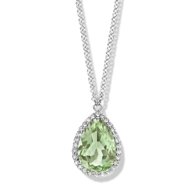 Etna necklace in 18K white gold with prasiolite and diamonds.