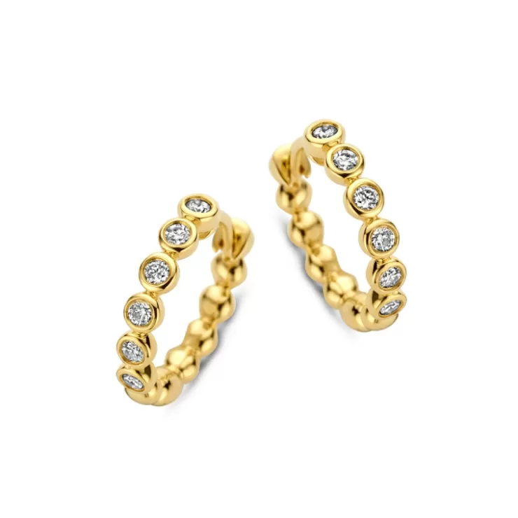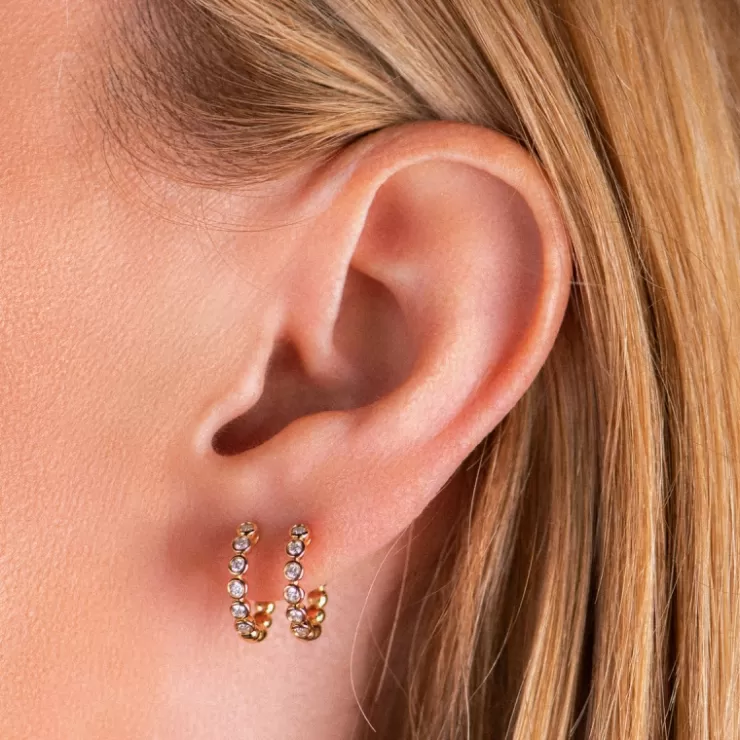 Ischia Basics creoles in 18K yellow gold with diamonds.