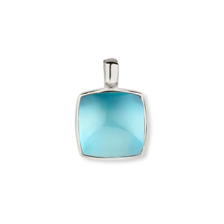 Pantelleria pendant in 18K white gold with Swiss Blue topaz on MOP.