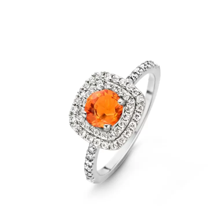 Salina ring in 18K white gold with orange sapphire and diamonds.