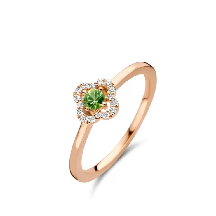 Salina ring in 18K rose gold with green sapphire and diamonds.