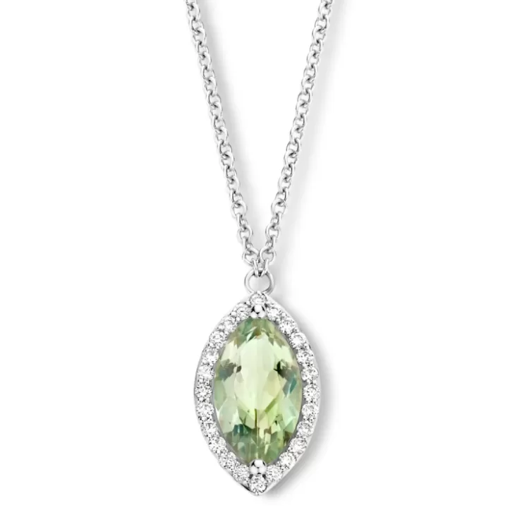 Etna necklace in 18K white gold with prasiolite and diamonds.