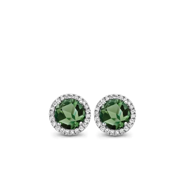 Etna earrings in 18K white gold with green tourmaline and diamonds.