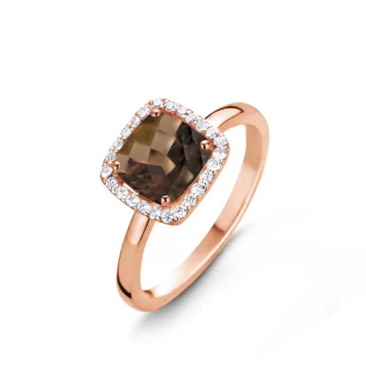 Etna ring in 18K rose gold with smokey quartz and diamonds.