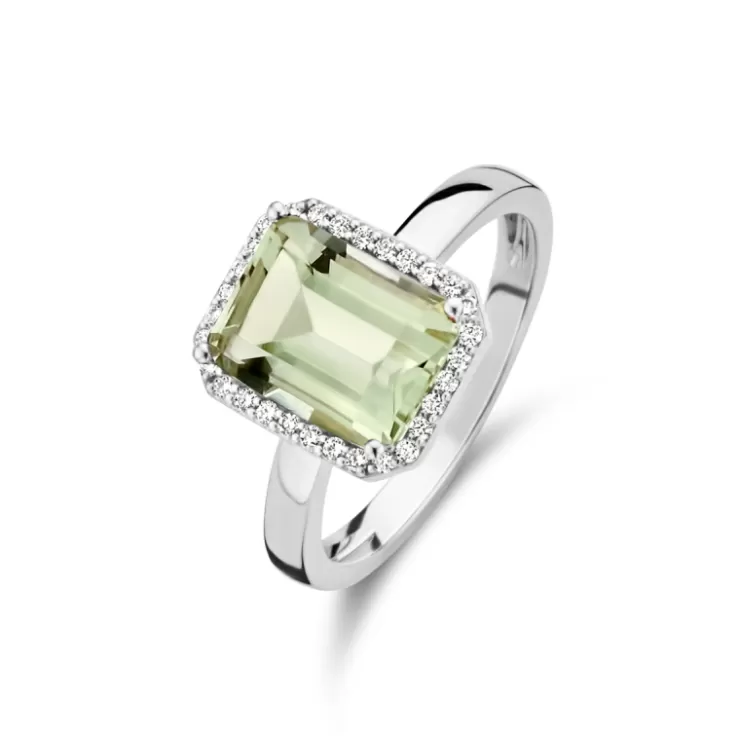 Etna ring in 18K white gold with prasiolite and diamonds.