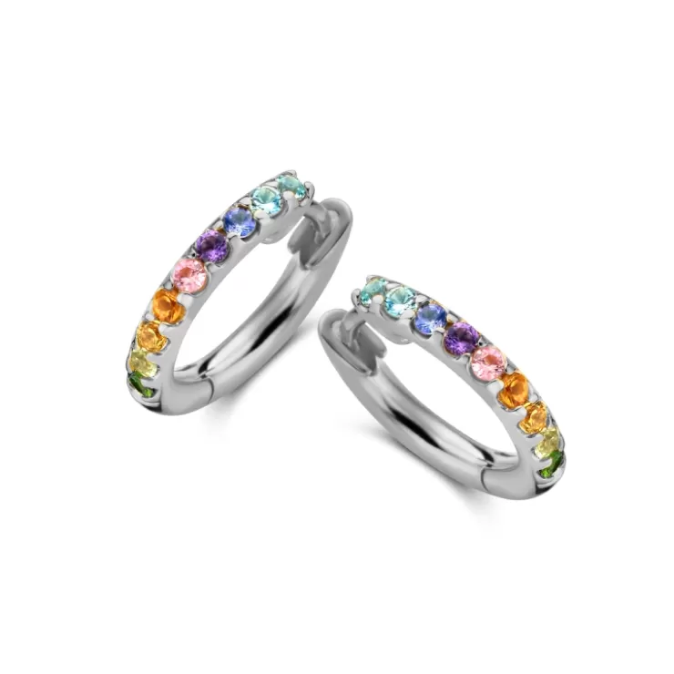 Ischia Basics creoles in 18K white gold with precious stones.