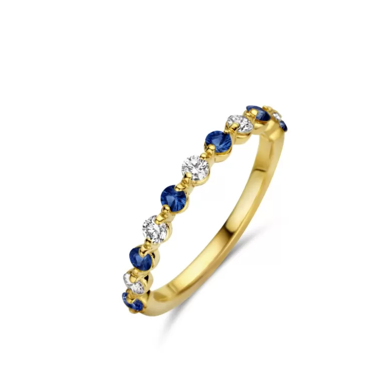 Ischia Basics ring in 18K yellow gold with blue sapphire and diamonds.