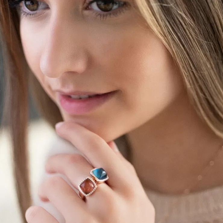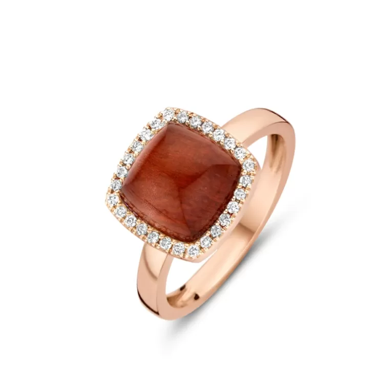 Pantelleria ring in 18 kt rose gold with quartz on red tiger eye and diamonds.