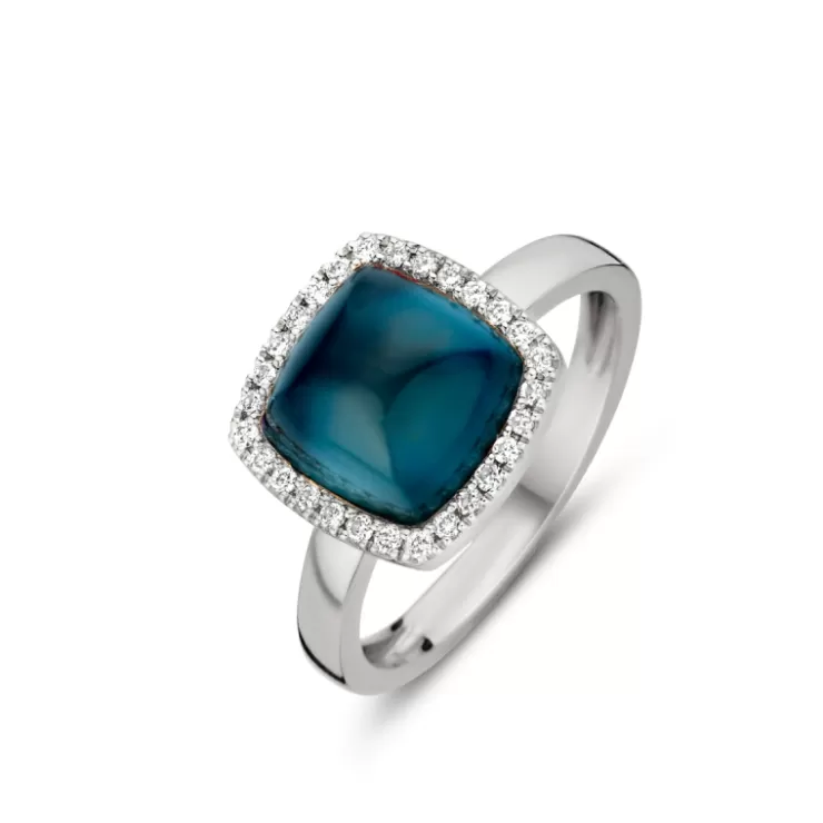Pantelleria ring in 18 kt white gold, London Blue topaz on MOP and diamonds.