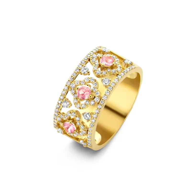 Salina ring in 18K yellow gold with pink sapphire and diamonds.