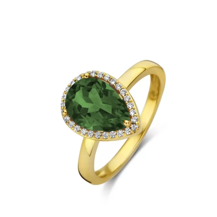 Etna ring in 18K yellow gold with green tourmaline and diamonds.
