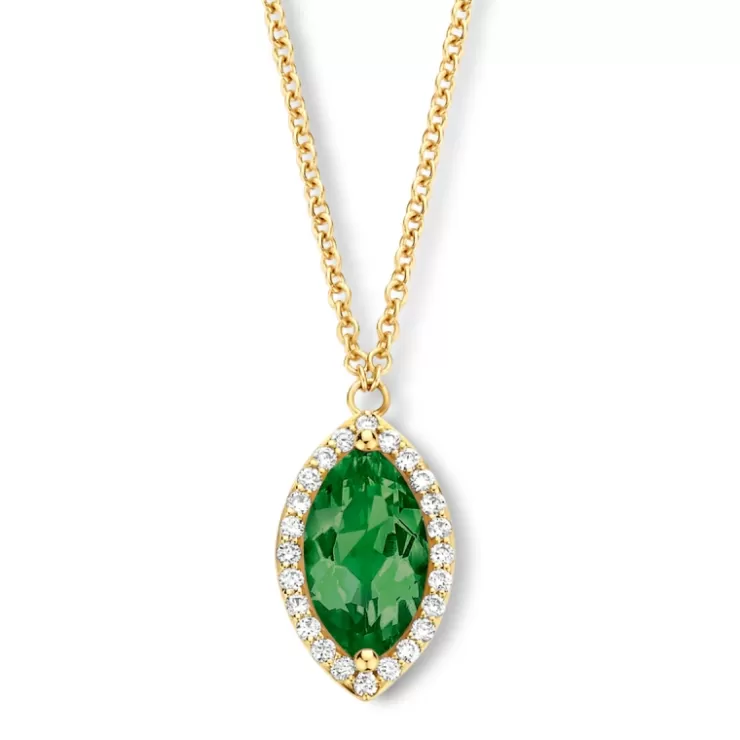 Etna necklace in 18K yellow gold with green tourmaline and diamonds.