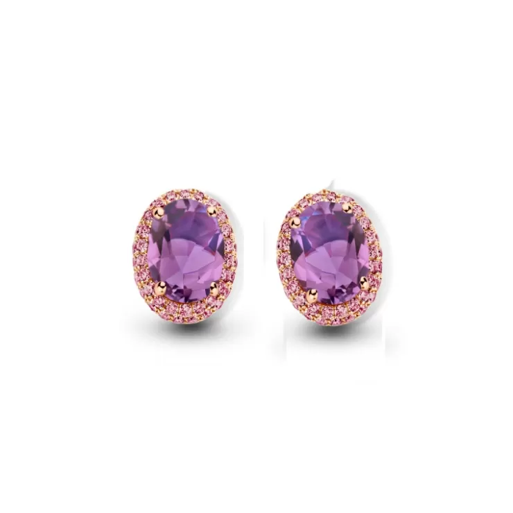 Etna earring in 18K rose gold with amethyst and pink sapphire.