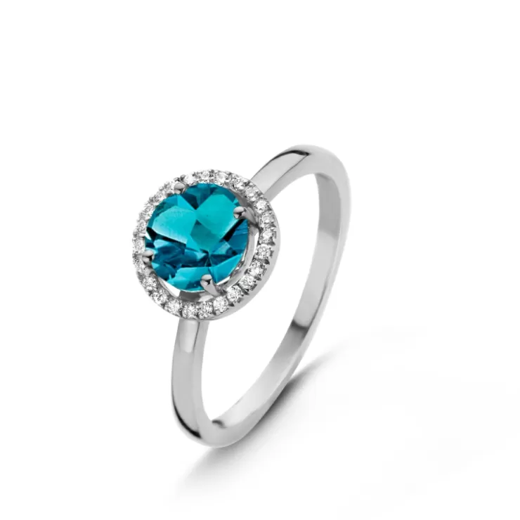 Etna ring in 18K white gold with London Blue topaz and diamonds.