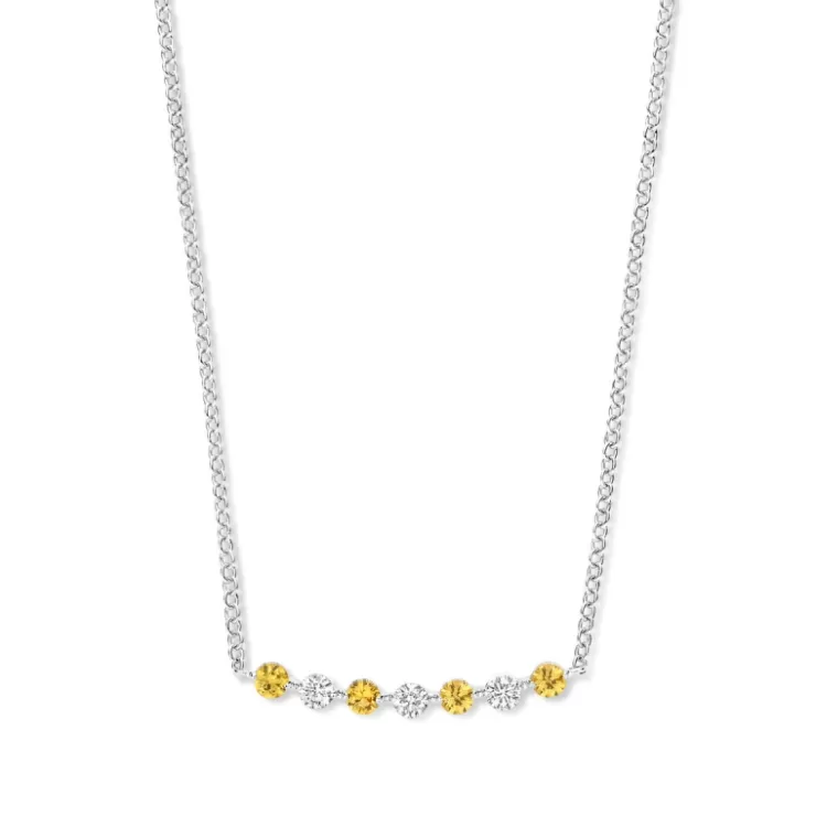 Ischia Basics necklace in 18K white gold with yellow sapphire and diamonds.