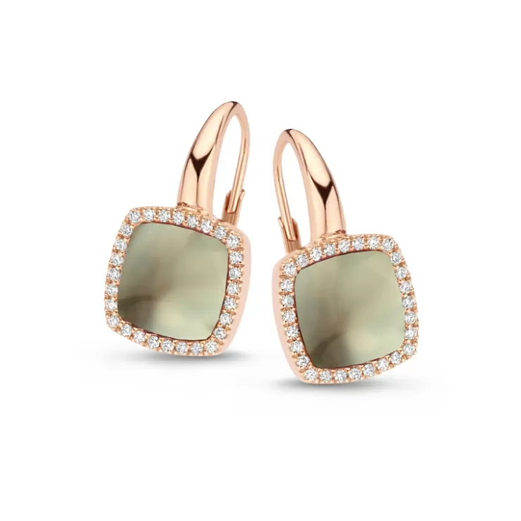 Pantelleria earrings in 18 kt rose gold set with prasiolite on MOP and diamonds.