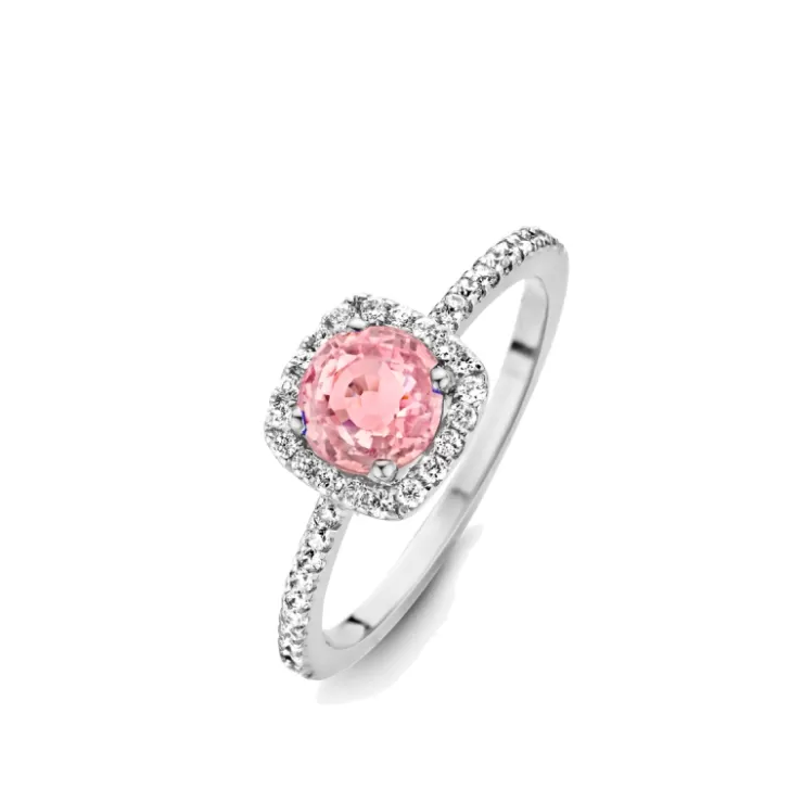 Salina ring in 18K white gold with pink sapphire and diamonds.