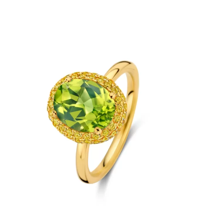 Etna ring in 18K yellow gold with Peridot and yellow sapphire.
