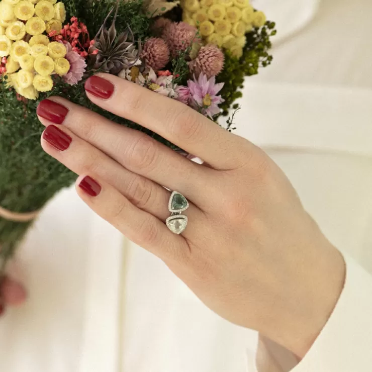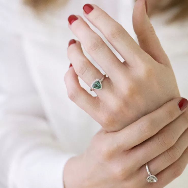 Etna ring in 18K white gold with green tourmaline and diamonds.