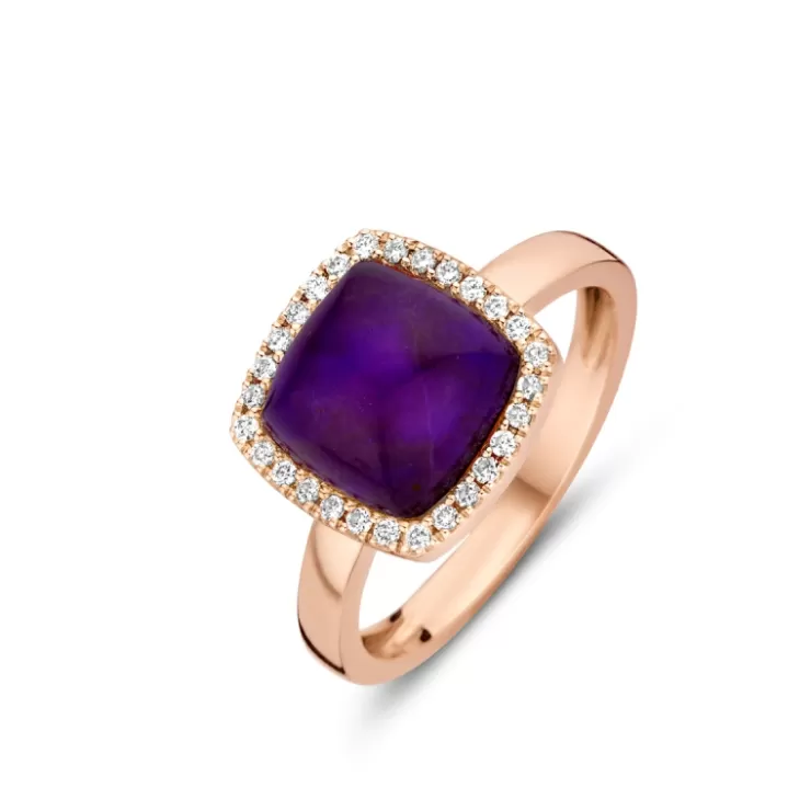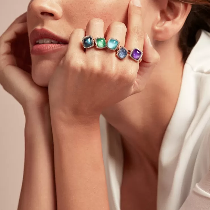 Pantelleria ring in 18 kt rose gold with quartz and sugilite on MOP and diamonds.