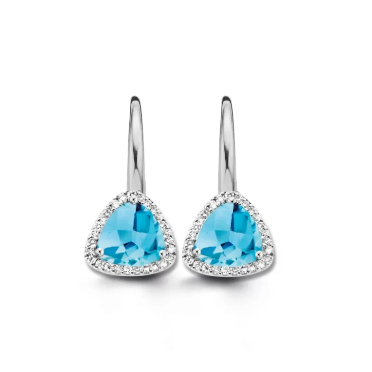Etna earrings in 18K white gold with Swiss Blue topaz and diamonds.