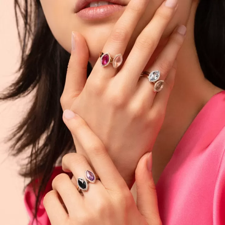 Etna ring in 18K rose gold with pink tourmaline and diamonds.