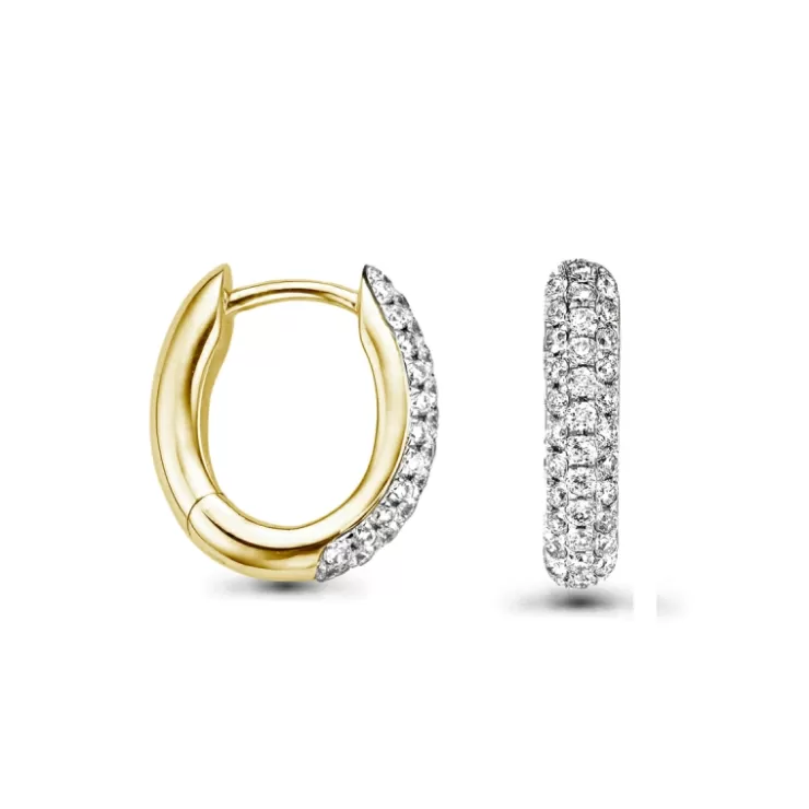 Ischia Basics creoles in 18K yellow gold with diamonds.