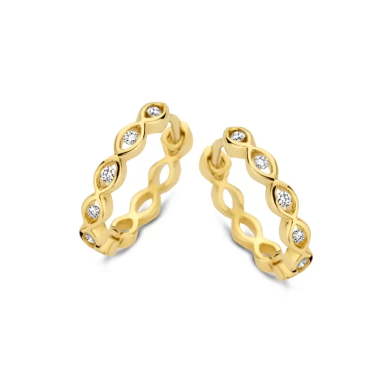 Ischia Basics creoles in 18K yellow gold with diamonds.