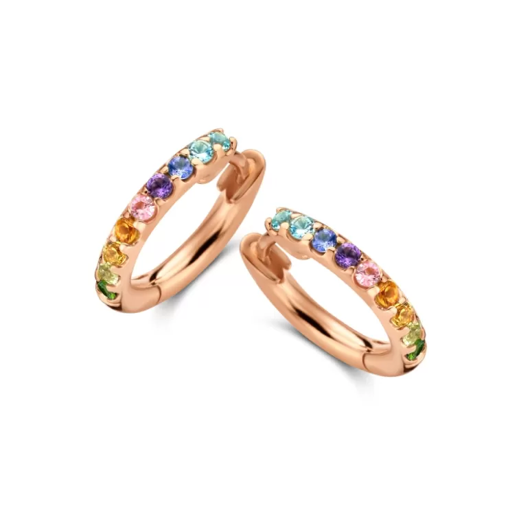 Ischia Basics creoles in 18K rose gold with precious stones.