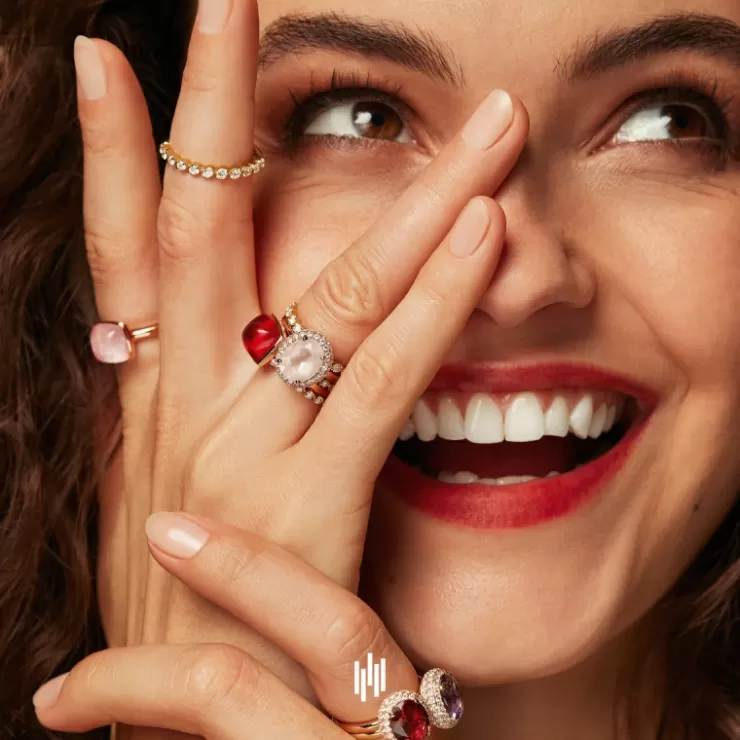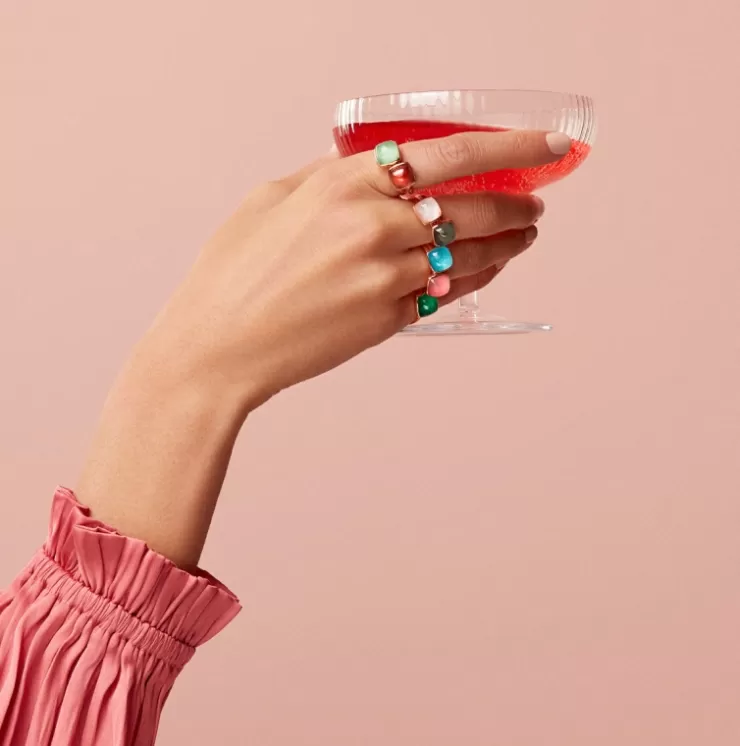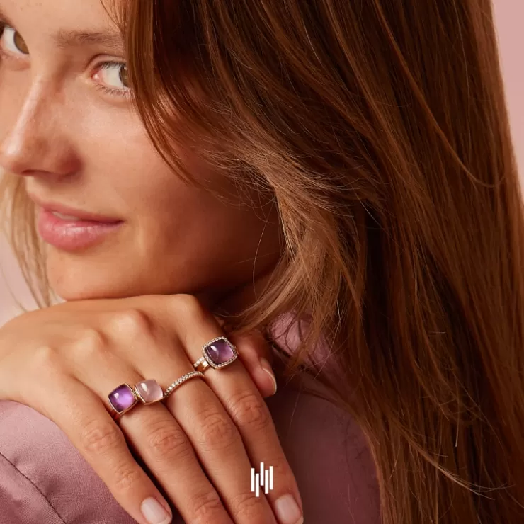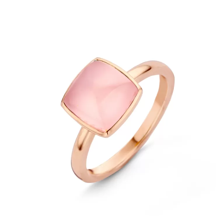 Pantelleria ring in 18K rose gold with pink quartz on MOP.