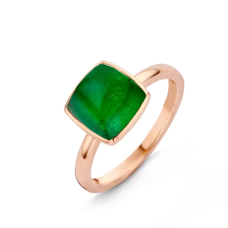 Pantelleria ring pink gold 750/1000 ring set with quartz and emerald on MOP.