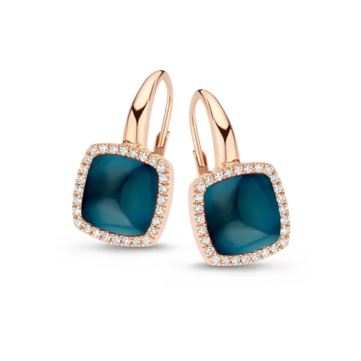 Pantelleria earrings in 18K rose gold with London Blue topaz on MOP and diamonds.