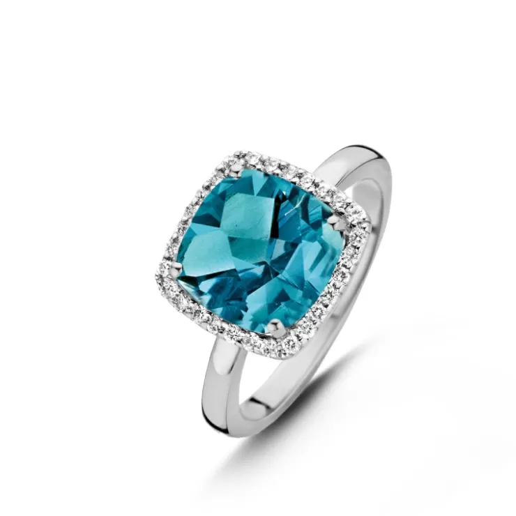 Etna ring in 18K white gold with London Blue topaz and diamonds.