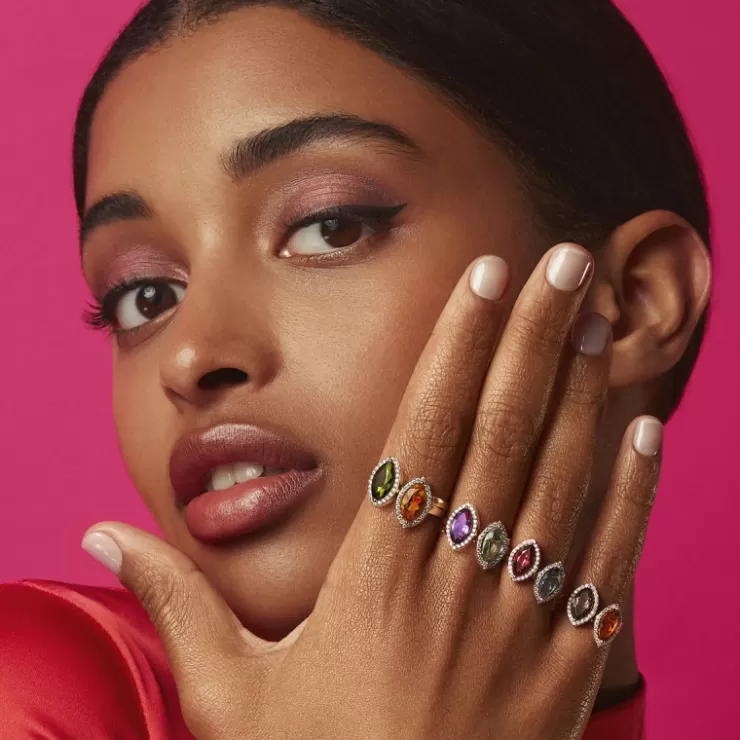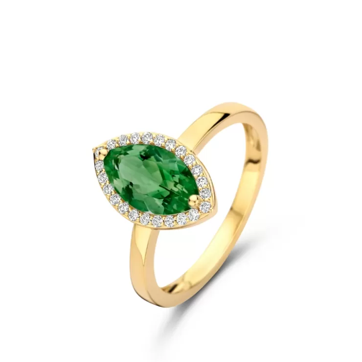 Etna ring in 18K yellow gold with green tourmaline and diamonds.