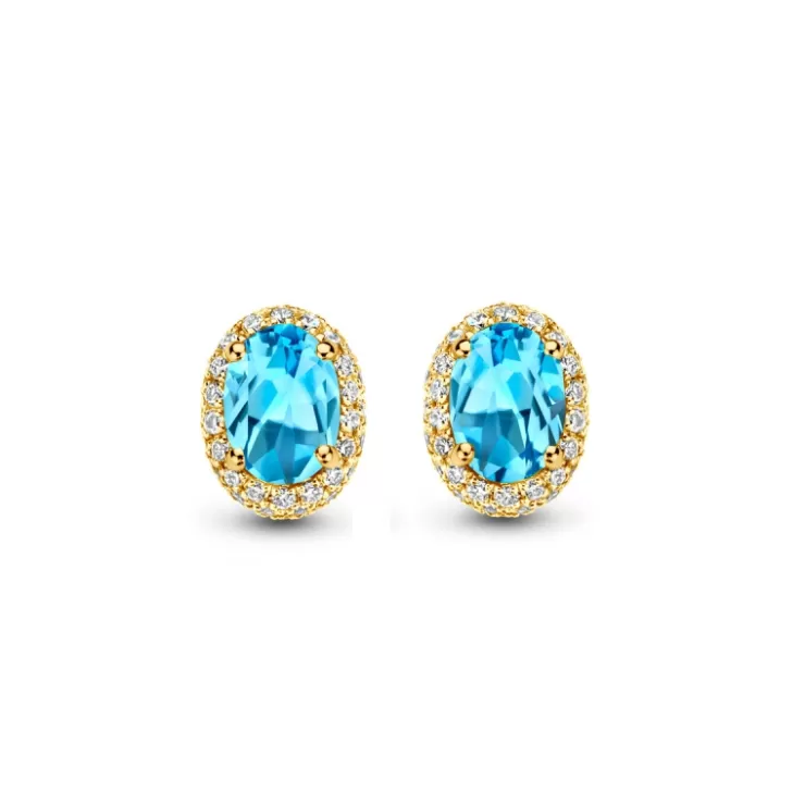 Etna earrings in 18K yellow gold with Swiss Blue topaz and diamonds.