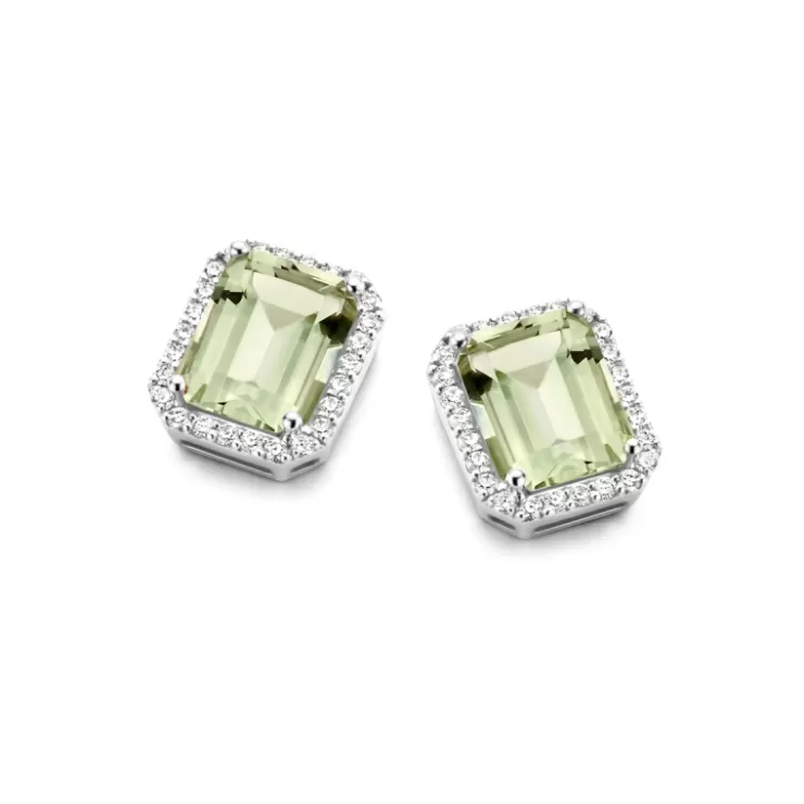 Etna earrings in 18K white gold with prasiolite and diamonds.
