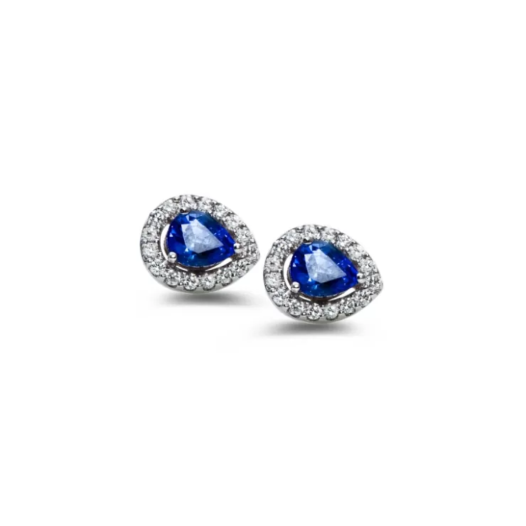 Salina earrings in 18K white gold with blue sapphires and diamonds.