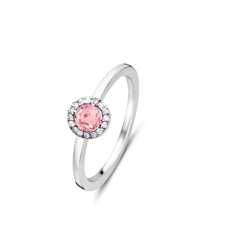 Salina ring in 18K white gold with pink sapphire and diamonds.