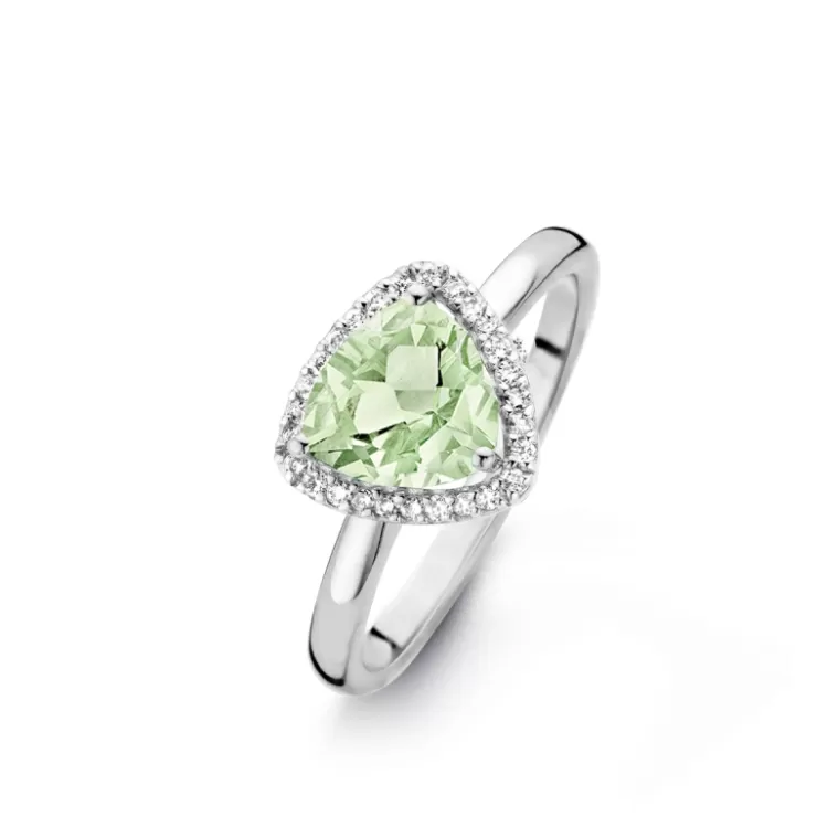 Etna ring in 18K white gold with prasiolite and diamonds.