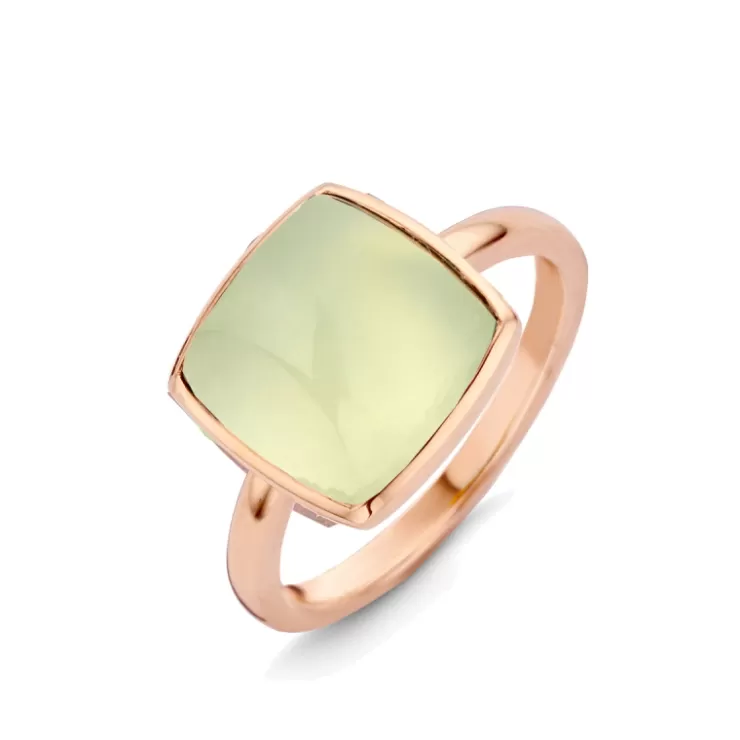 Pantelleria pink gold 750/1000 ring with prehnite on mop.