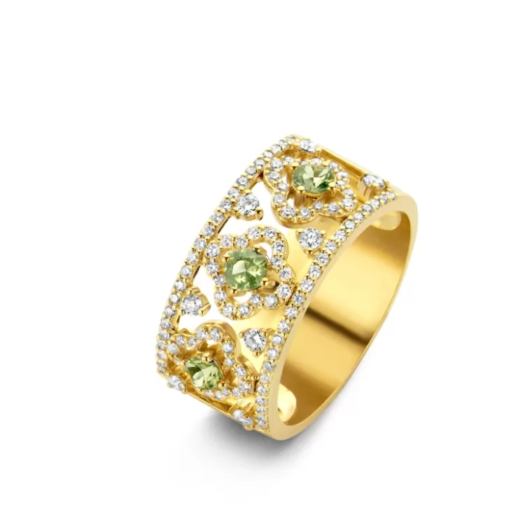 Salina earrings in 18K yellow gold with green sapphire and diamonds.