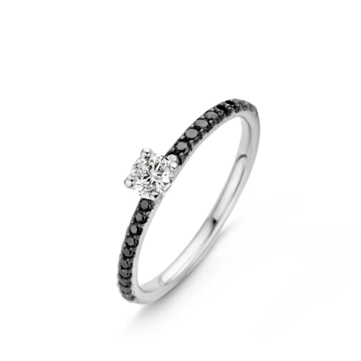 Salina ring in 18K white gold with white and black diamonds.