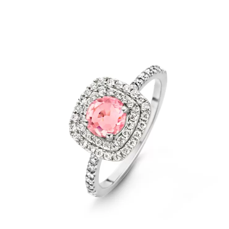 Salina ring in 18K white gold with pink sapphire and diamonds.