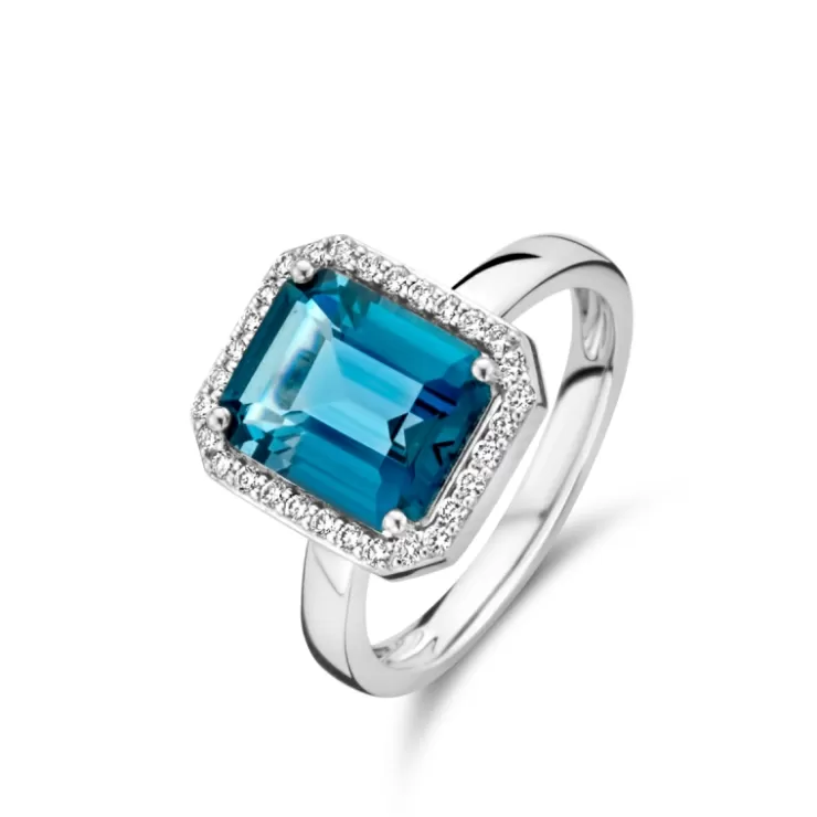 Etna ring in 18K white gold with London Blue topaz and diamonds.
