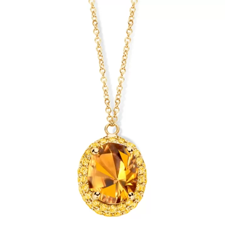 Etna necklace in 18K yellow gold with orange citrine and yellow sapphire.