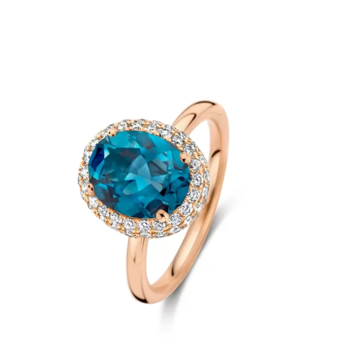 Etna ring in 18K rose gold with London Blue topaz and diamonds.